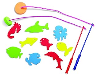 Foam/plastic VERSATILTIY: Wet & stick fish can be caught on the poll, float in the water, and stuck to any smooth surface HAND-EYE COORDINATION: Fishing activity allows for development of hand-eye coordination DEVELOP MENTAL SKILLS: Figuring out how to catch the fish encourages growth of logic and reasoning skills VISUALLY STIMULATING: Multi-colored and shaped fish develop color and shape recognition Contains 56 pieces; Edushape products are made with BPA and phthalate free plastic; Recommended for ages 3 years and up