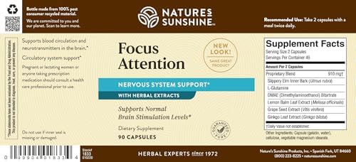Nature's Sunshine Focus Attention, 90 Capsules, Provides Nutrients That Help Maintain Normal Brain-Stimulation Levels While Supporting Blood Circulation and Neurotransmitter Levels in The Brain