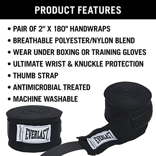 - 180 pulgadas de material de mezcla de algodón/spandex lavable a máquina proporciona comodidad y seguridad transpirables durante el entrenamiento. La correa para el pulgar garantiza la facilidad de uso con un gancho y cierre de bucle para un ajuste seguro|Null|Null|