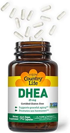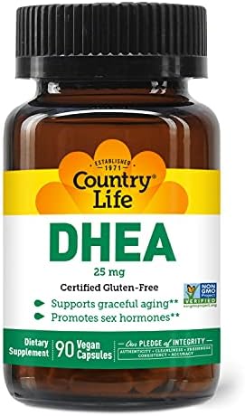 Country Life DHEA 25mg, 90 Vegan Capsules, Certified Gluten Free, Certified Vegan, Non-GMO Verified,