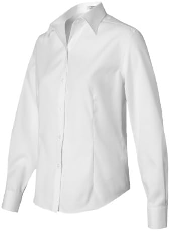 4 oz./yd², 100% cotton oxford. Two pearlized buttons on cuffs. No chest pocket. Spread collar. No back pleat. Feminine silhouette with front and back darts. Non-iron technology for wrinkle-free good looks and incredible durability.