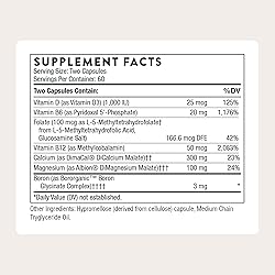 Bones: For individuals who need bone support beyond diet* Designed For: Formulated for individuals who need extra bone support, such as postmenopausal women* More Than Calcium: Nutritional support beyond the basics of calcium, magnesium, and D Free From: Every Thorne product is made with the purest possible ingredients - without gluten or other major allergens (eggs, tree nuts, peanuts) This product also contains no soy, dairy, shellfish, or fish Trusted: Thorne is chosen by champions and trusted by 100+ professional sports teams, a proud partner of U.S. National Teams, and the #1 recommended clinical brand by health-care practitioners (2023 Health-Care Practitioner Seller Survey)