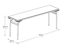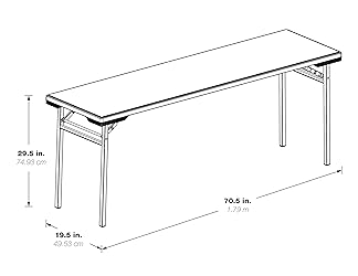 Training multipurpose table for indoor and outdoor use Heavy-duty blow-mold resin top and powder-coated steel tube frame Waterproof, stain proof, scratch- and impact-resistant Sets up and cleans easily; folds flat for storage Measures 70.5" inches wide by 19.5" deep by 29.5" high; Meets or exceeds test standards (BIFMA and MTL) 350 lbs. evenly distributed; Approved for commercial use