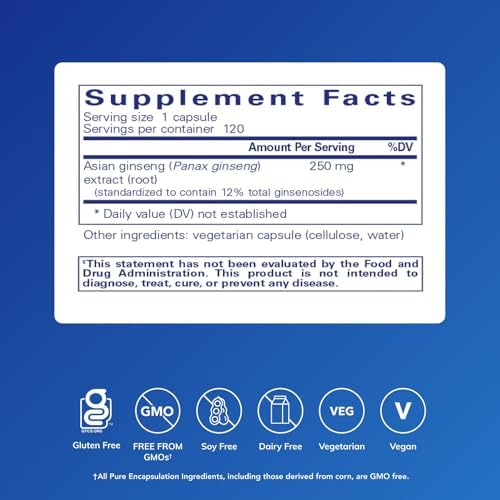 Pure Encapsulations Panax Ginseng | Hypoallergenic Supplement Helps The Body Adapt to Occasional Physical Stress* | 120 Capsules