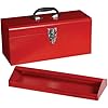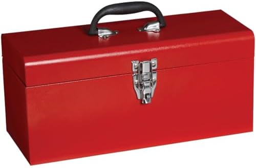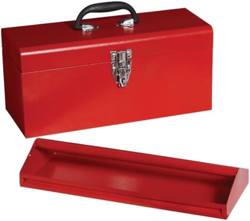 17 In. toolbox has rugged steel tray and comfort grip handle. Drawbolt with padlock eye lock. All steel construction. 17 In. L x 7.7 In. H x 6.7 In. D. 5.7 Lb. weight. Durable red powder paint with hammertone finish. Tray with handle, red powder painted with hammertone finish.