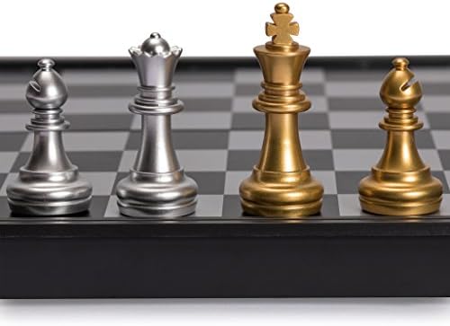 - Complete Chess Set: The set comes with detailed gold and silver colored chess pieces; King: 1.9 x 0.8 inches (49 x 20 millimeters); Queen: 1.7 x 0.8 inch (43 x 20 millimeters); Pawn: 1 x 0.6 inch (25 x 15 millimeters)