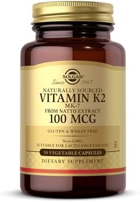 Solgar Vitamina K2 MK7 100mcg Cápsulas Vegetales Apoya la Salud Ósea Fuente Natural de Alimentos Completos de Extracto de Natto No OGM Libre de Gluten Porciones, Original, 50 Unidades