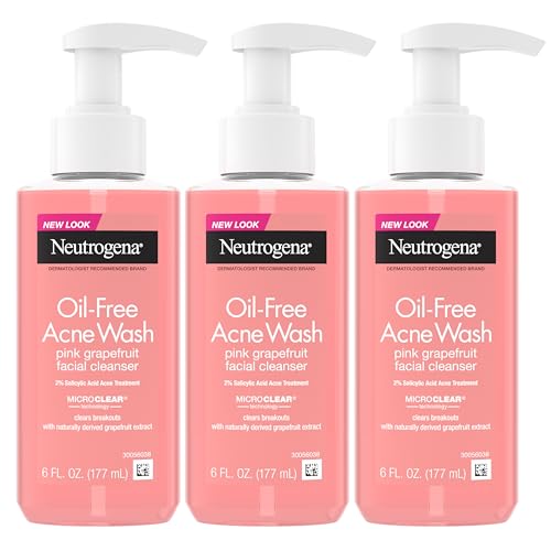 Neutrogena Oil-Free Pink Grapefruit Pore Cleansing Acne Wash and Daily Liquid Facial Cleanser with 2% Salicylic Acid Acne Medicine and Vitamin C, 6 fl. oz, 3 Pack