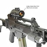 Durable ABS plastic and reinforced plastic gear box, shooting 150-200 fps Top quality product Adjustable Hop Up for Best Accuracy High Power Battery & Charger included, Red Dot Scope, LED Flashlights This product is restricted from shipment into the state of New York