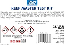 Contains one (1) API REEF MASTER TEST KIT Reef Aquarium Water Test Kit 1-Count, including 7 bottle of testing solution, 2 color cards and 4 test tubes with cap Helps prevent invisible water problems that can be harmful to fish and cause fish loss Accurately monitors 4 most vital water parameters levels in reef aquariums: Calcium, carbonate water hardness, phosphate and nitrate Designed for use in reef aquariums only Use for weekly monitoring and when water or fish problems appear