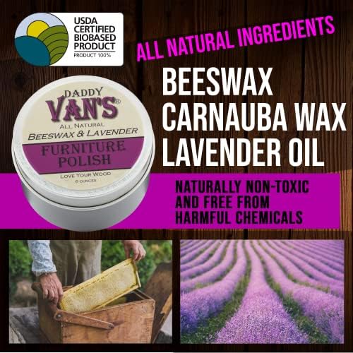 Daddy Van's All Natural Beeswax & Lavender Furniture Polish - Chemical-Free, Non-Toxic Wood Conditioner Scented with Pure Lavender Essential Oil
