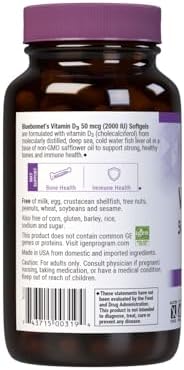 Bluebonnet Nutrition Vitamin D3 2000 IU50 mcg High Potency Immune Support, High Absorption Cold-Water Fish Liver Oil & Plant-Based Non-GMO Safflower Oil, Support Strong Bone, Gluten-Free, 250 Softgels