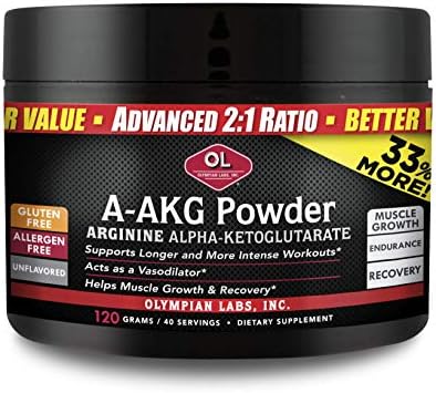 Olympian Labs Arginine (A-AKG) is a pre & post-workout powder that helps attain a deeper level of training, increased muscle pump, and provides sustained muscle growth in a shorter timeframe for post-workout, it helps to process the ammonia created by intense muscle activity and create glutamine which is important for energy and muscle recovery. A-AKG helps increase workout performance, which may result in increased muscle mass. Arginine Alpha-Ketoglutarate is a Nitric Oxide (NO) Inducer and Growth Hormone (GH) Releaser Amino Acids: Studies show arginine alpha-ketoglutarate has a positive effect on increasing base levels of growth hormone.