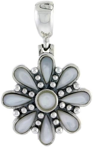 Sterling Silver Oxidized Flower Pendant, w/ 4mm Round & Eight 6 x 3 mm Pear-Shaped Mother of Pearls, 7/8" (22mm) Tall