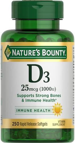 Nature’s Bounty Vitamin D3 1000 UI, Apoyo Inmunológico, Ayuda a Mantener Huesos Saludables, 250 Cápsulas Suave de Liberación Rápida
