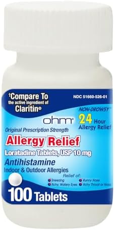 Ohm Allergy Pills - Loratadine Allergy 24 Hour Non Drowsy Relief for Seasonal Allergies, Sneezing - Loratadine 10 mg Antihistamine for Effective Non-Drowsy 24-Hour Symptom Relief - 100 Count