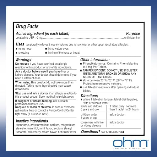 - Loratadine Tablets Temporarily relieves Runny nose Sneezing Itchy, watery eyes.