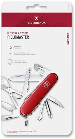 - FIELDMASTER: El Victorinox Fieldmaster es tu héroe cotidiano, perfectamente diseñado para enfrentar una variedad de tareas al aire libre. Las características clave incluyen una sierra de madera, tijeras y destornillador de alambre.