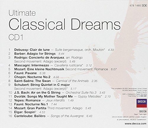 Features works by Mozart, Debussy, Bach, Beethoven, Schubert, Chopin, etc...Including pieces such as Clair de Lune, Jesu, Joy Of Man's Desiring, Love Theme (Romeo & Juliet), Eine Kleine Nactmusik, and many more!