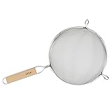 Single Mesh – Fine filtration for refined results Stainless Steel – Durable material withstands commercial use Wire Handle – Provides control and easy maneuvering Hanging Loop – Simple storage and drying Deep Bowl – Holds more for efficient straining