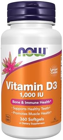 NOW Supplements, vitamina D-3, 1000 UI, alta potencia, soporte estructural*, 360 cápsulas blandas