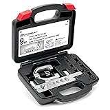 Powerbuilt 9 Piece Double Flaring Tool Set, Use on Copper, Aluminum, Soft Steel Brake Line and Brass Tubing, Storage Case - 648610