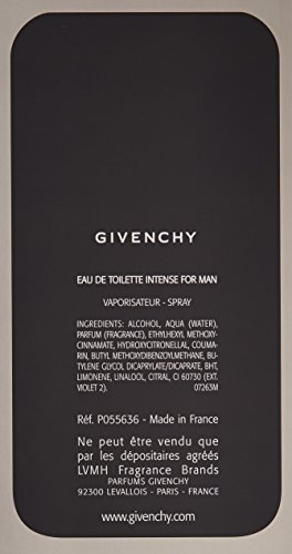 PLAY INTENSE by Givenchy for MEN EDT SPRAY 3.3 OZ Launched by the design house of Givenchy in 2008, PLAY INTENSE by Givenchy possesses a blend of patchouli, mandarin, bergamot, vetiver, coffee flower, tonka bean, labdanum, Caribbean amyris wood, pink pepper.