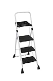 - Heavy-duty steel framed step stool features heavy-duty injection molded steps with large locking top platform step. New 1 hand fold and lock release. Continuous rear leg support adds strength and stability. Stabilizing feet add to the safety. Extended hand-grip handle provides extra security. Deluxe contoured tool tray helps balance paint cans and folds down for storage. 2-position paint tray attachment points come with paper towel brackets and slots to hold screwdrivers, etc. Step depth: 10 In., 10 In., and 12 In. Width: 14-3/4 In. total open height is 55-1/2 In. Total folded height 61-1/4In. Meets ANSI standards for Type II duty rating, load capacity 225 Lb. 10 year manufacturer's warranty.