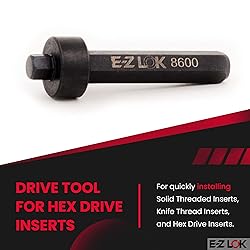 - Drive Tool For E-Z Hex Threaded Inserts The E-Z LOK Threaded Insert Drive Tool speeds up the installation of threaded inserts without engaging internal threads. Quickly insert threaded inserts for soft wood with this optional threaded insert installation tool without time-consuming thread engagement. A standard hex shaft allows for the use of this threaded insert drill tool with standard power drills and drill presses. Speeds High Volume Installation Quickly drives in Hex Drive Inserts. Installation is easy. Simply drill a hole with a standard drill. Thread an E-Z LOK thread insert into place with this optional drive tool. Features Quickly installs threaded inserts Use with Hex Drive Inserts Fits standard power drills and drill presses
