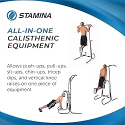 - The Stamina 1690 Power Tower provides total body workout, suitable for body strengthening, lose weight, build and tone muscles. This pull up bar station improves your figure, posture, mobility, balance and overall fitness health. Building total body strength and sculpting your chest, abs, back and arms has never been easier or more convenient. This versatile dip station offers different workout possibilities. This power tower is suitable for strength training, targeting specific muscle group without the use of weights, and toning the overall muscular core. This pull up bar station includes secure foam hand grips at each exercise station that provide stability and comfort during exercise. The durable steel frame of this free standing pull up bar supports users of up to 250 lbs. This dip bar tower is designed for users with limited space. With the Stamina 1690 Power Tower, you’ll get a whole lot of gym equipment in one 49” by 42” footprint. The multiple workout stations utilize gravity and your own body weight to provide an invigorating, effective workout. Our pull up bar provides multiple workout stations that fit easily in any indoor or garage space. CONVENIENT SMART WORKOUT APP- This home gym equipment is fully supported by müüv, the all-in-one app that provides smart guided audio coaching, follow-along assembly videos, and personalized workouts, and helps you move 500+ minutes per month with the right mix of cardio, strength, and flexibility for a healthy and sustainable lifestyle. The all-in-one app comes with a follow-along assembly video, personalized workouts tailored to your strength training equipment, and an ad-free music listening experience from iHeartRadio. Download the müüv app on the Apple App Store or the Google Play store. Providing you with the best workout and fitness experience, get visible results, and track your progress with Stamina.