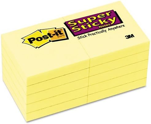 Post-it : Super Sticky Notes, 2 x 2, Canary Yellow, 10 90-Sheet Pads per Pack Keeping your ideas and other details organized and handy can be quite a hassle--so you`re going to need all the help you can get. These 90-sheet, Post-it Super Sticky Notes feature a revolutionary adhesive technology that allows them to stick securely to more surfaces. Whether it`s on your monitor, desktop, walls or doors, these notes will be there to remind you of your important details. Canary Yellow color is simple and smart. Global Product Type: Self-Stick Pads; Pad Type: N/A; Paper Color(s): Canary Yellow; Number of Sheets per Pad:90:Manufactured by.: Post-it