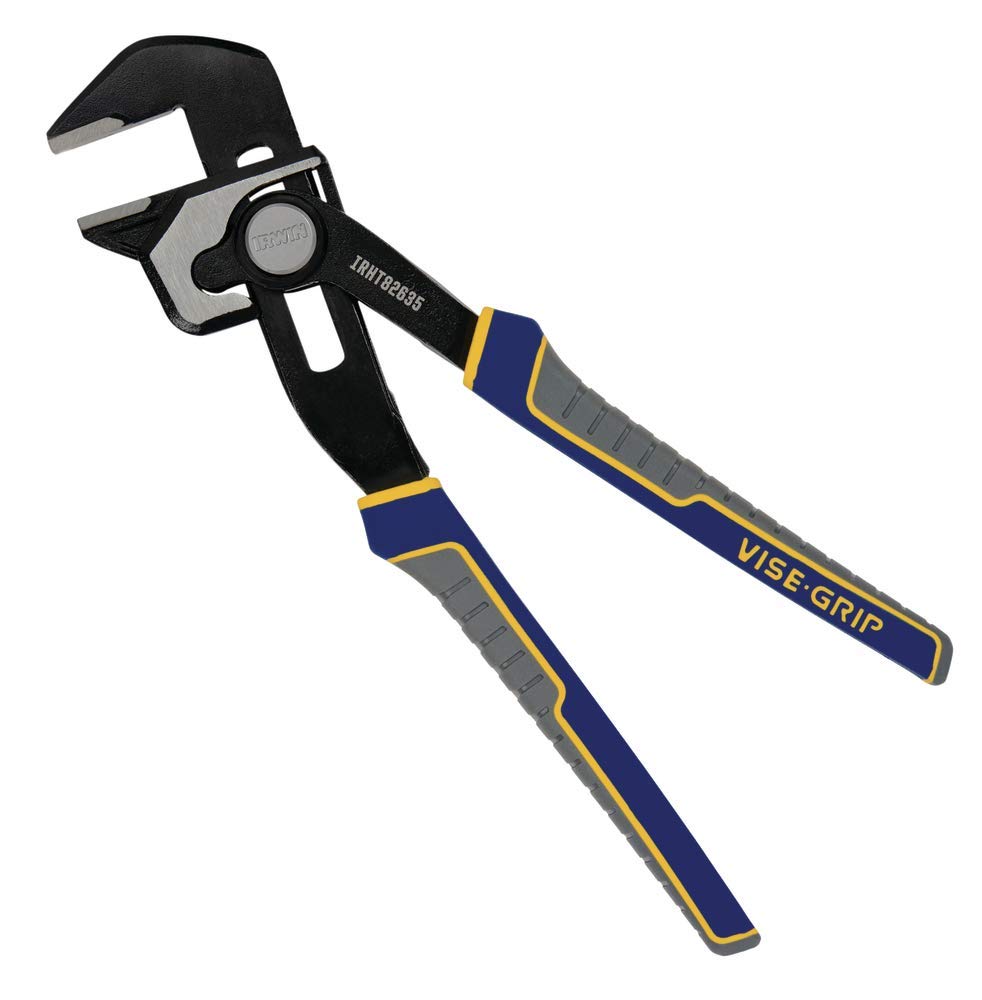 A simple push of a button adjusts the lower jaw twice faster than traditional groove joint pliers. Multi-Groove Ratcheting System has twice the groove positions of other groove joint pliers, for precise positioning to grip any type of surface. Anti-pinch, non-slip ProTouch Grips provide comfort, control, and less hand fatigue. Right angle teeth grip in all directions for maximum bite. Metal Injection Molding process for precision parts delivers strength and exceptional performance. IRWIN VISE-GRIP Tools GrooveLock Pliers, V Jaw, 6-inch (4935351)
