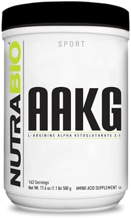 Maximize your workout potential with NutraBio Arginine AKG Supplement, formulated to enhance muscle growth, increase strength, and boost endurance. Our high potency formula delivers 1000mg of Arginine Alpha-Ketoglutarate (AKG) per serving, providing superior support for athletes and fitness enthusiasts looking to elevate their performance. Arginine AKG is a powerful amino acid compound that plays a critical role in protein synthesis and nitric oxide production. By increasing nitric oxide levels, Arginine AKG enhances blood flow, leading to improved oxygen and nutrient delivery to your muscles. This results in better muscle pumps, increased strength, and enhanced endurance, allowing you to push through your toughest workouts with ease.Boost Nitric Oxide to extend muscle pump, enhance muscle growth and get rock hard muscle: Arginine Alpha-Ketoglutarate (AAKG) can boost short term nitric oxide (NO) levels which creates a muscle growth environment in your body by increasing the volume of blood flowing through muscle tissue which leads to increased oxygen and nutrient delivery, glucose uptake, muscle velocity and power output. AAKG helps amplify muscle-growth signals giving faster gains in lean mass and accelerates both fast and slow twitch muscle fiber for greater strength, improved muscle recovery, and increased endurance. Arginine-AKG promotes increased nitric oxide (NO) production for enhanced blood flow and better delivery of oxygen and nutrients to working muscle. That means faster muscle growth and rock hard muscle. Arginine Alpha-Ketoglutarate is for anyone who wishes to extend their muscle pump - signal muscle growth, speed recovery, increase their strength, and stamina. In addition, L-Arginine stimulates the production of Growth Hormone (GH), a chemical produced by the body that promotes growth and plays an essential role in metabolism. Growth Hormone (GH) is popular among athletes because it's believed to play a part in building lean muscle mass and increasing strength. Used in conjunction with your exercise program, AAKG may support myodilation, the expansion of muscle tissue. This product contains 100% Arginine-alpha-ketoglutarate in its purest form to give you continuous pumps and rock hard muscles. Arginine-AKG is a more bio-available form of Arginine (or L-Arginine) which is a crystalline free-form amino acid involved in numerous areas of human biochemistry, including muscle metabolism, ammonia detoxification, hormone secretion and the immune system. L-Arginine is considered a semi-essential amino acid, because although it is normally synthesized in sufficient amounts by the body, supplementation is sometimes required. Arginine supports protein synthesis as it is involved in the transport and storage of nitrogen and is important for proper physical performance because it is used by the body to produce creatine. An additional function and benefit of L-Arginine-AKG is its role as a precursor in creatine and glutamine production. Daily supplementation of L-Arginine-AKG has been shown to increase the body's creatine and glutamine stores. This may lead to improvements in performance, strength and recovery for athletes.