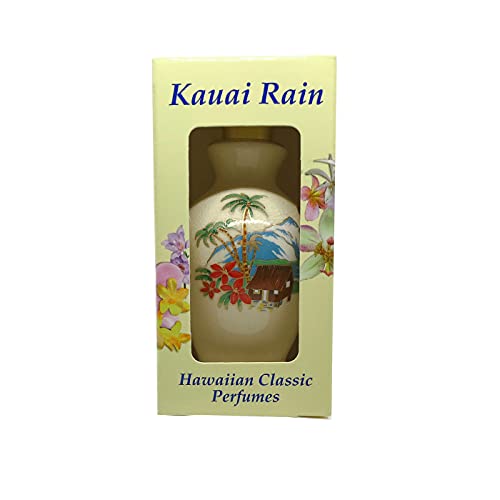 Kauai Rain is the undisputed finest Hawaiian perfume. A soft lovely blend of musk, woods and exotic Hawaiian tropical flowers. It comes in a fine blue or cream colored porcelain bottle with various outside exquisite designs. Color and artwork on the bottle will vary. Hawaiian Classic Perfumes - 1/4 fl oz porcelain bottle