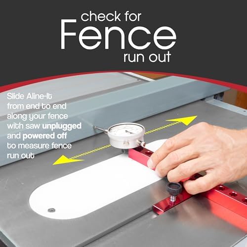 - TABLE SAW DIAL INDICATOR - One of the most common machines that need to be aligned and maintained is our table saws. As we use them, the fence and saw blade amongst other parts tend to slightly shift over time. With the A-LINE-IT DELUXE, easily identify saw blade straightness, fence run-out, arbor run-out and flange run-out.