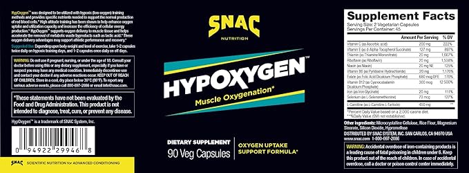SNAC HypOxygen - Muscle Oxygenation Performance & Endurance Supplement, Improves the Body’s VO2 Max & Assists with Recovery from High-Repetition Exercise, 90 Veggie Capsules (45 Servings)