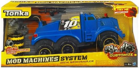 Crea y personaliza tu propio vehículo monstruo; ¡y luego desmonta para hacerlo todo de nuevo! Este genial vehículo DX14 SEMI-TRANSPORTADOR viene con 10 accesorios de piezas diferentes para que lo configures como quieras. Añade las ruedas de calle para algo de conducción en la ciudad o añade las ruedas todo terreno para una conducción de aventura. ¡El spoiler incluso se convierte en un gancho de remolque! Cuando tengas tu vehículo construido, enciende el motor motorizado y deja que los sonidos que hace te animen ¡Aumenta tu modo de velocidad para el poder de transporte de carga o baja para la acción de alta velocidad. ¡De cualquier manera, tú y tu vehículo personalizado tienen algunos impresionantes viajes por delante! Set incluye chasis, motor, carrocería, 4 ruedas de calle con tira de tracción, 6 ruedas todo terreno, spoiler/gancho de remolque, antena de navegación GPS, protector de barro, 2 tanques de nitro, toldo y accesorios de herramientas TONKA.