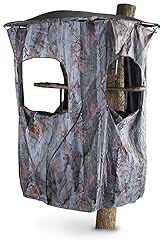 - GUIDE GEAR UNIVERSAL TREE STAND BLIND KIT The Guide Gear tree stand and ground blind for deer hunting is ideal for concealment on your next hunt. The dense hunting camo fabric blends in with your surroundings. Conceal yourself within minutes with the easy to install construction. The universal design fits any tree stand or can be used as a ground blind, stakes are included for ground use. With extra-large windows, zipper front entry and bungee bottom pull string, the deer hunting blind has everything you need for a successful day of hunting. Fits a 2-person ladder stand (sold separately). The package includes the top frame and fabric, our tree stands are sold separately. KEY FEATURES: 3 extra-large zip-out windows Zipper-front entry Extra-long tie strings for security Bungee bottom pull string Stakes included for ground use Includes the top frame and fabric Dimensions: 3'9" x 4'4" x 5'2"h. Material: Polyester