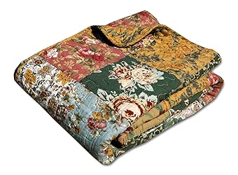 100% Cotton Imported With charming floral prints and paisleys overstitched with vermicelli quilting for durability and surface texture, Antique Chic combines the comfort of 100% cotton with updated retro styling Throw dimensions: 50x60" Made In China Finely stitched with a vintage rose bound edge and back One side has an all over floral print and the face is a patchwork of richly printed fabrics Overstitched with vermicelli quilting for durability and surface texture Easy care machine washable cotton 100-percent cotton face, back and fill