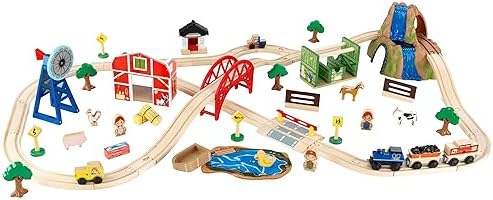 KidKraft Wooden Rural Farm Train Set with 75 Pieces, Children's Toy Vehicle Playset, Gift for Ages 3+