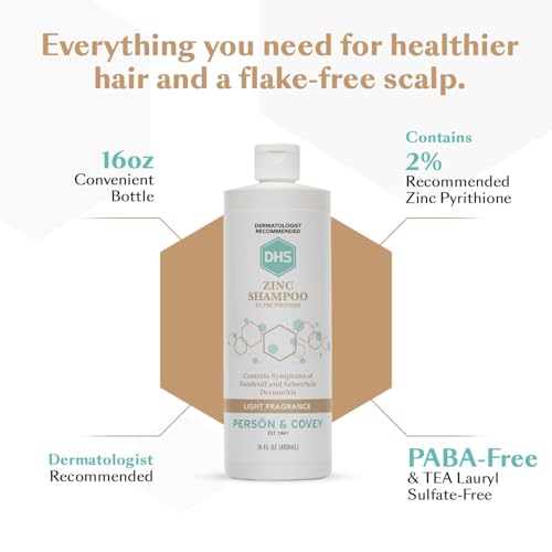 Recomendado por dermatólogos para un alivio rápido de los brotes de caspa y dermatitis seborreica. Suave y limpio en el cuero cabelludo y el cabello. Generosa botella de 16 oz. La fórmula nutritiva y calmante contiene un 2% de piritiona de zinc. Libre de PABA. TEA sin lauril sulfato. Sin sello cuando está en estado nuevo. Obtenga un alivio instantáneo desde el primer uso. Esta fórmula única y relajante no daña el cuero cabelludo y el cabello. Disfruta de un cabello suave y brillante sin más escamas. Lávese el cabello con el champú DHS Zinc de 3 a 4 veces por semana, o según las indicaciones de su médico. Úselo con el champú DHS Regular o Clear los otros días para que su cabello se mantenga sano. Durante tres generaciones, Persōn & Covey, Inc. ha fabricado productos de calidad con las mejores innovaciones en cuidado dermatológico y protección solar. De propiedad familiar desde 1941. Con sede en California, EE. UU.