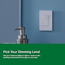 Installs in as little as 15 minutes with Lutron dimmer switch for LED lights in homes of all ages as no neutral is required Tested on 1,000s of light bulbs and dozens of brands for flicker-free dimming, Lutron's LED compatibility tool offers details on the Lutron dimming light switch The dimmer switches for LED lights can be used in single-pole or 3-way dimmer switch applications with a mechanical switch, where lights are controlled from one or two light switches Rocker switch turns LED dimmer switch on/off to favorite light level, discreet slider dims and brightens the light bulbs Light dimmer switch works with up to 150-Watt of dimmable LED/CFL bulbs or 600-Watt of incandescent/halogen bulbs Includes (1) Lutron Diva Dimmer Switch and (1) coordinating wallplate Light switch dimmer to create your own ambiance for rooms like your kitchen, living room, and basement; dim the lights for a romantic dinner or brighten them for family game night Light switch with dimmer provides over 250 lighting levels to create the perfect light for any activity Use a dimmable light switch to adjust lights when entering your bathroom late at night to create a calm and soothing environment