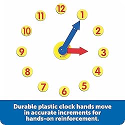 - Teach kids how to tell time by building a giant demo clock on the whiteboard for the whole class to see. Durable plastic clock hands are geared to move in accurate increments. Correlates to National Math Standards.We're Learning Resources®, and we've been helping parents and teachers build generations of amazing kids since 1984. From ABCs and 123s to fine motor and STEM skills, our educational toys offer kids the building blocks they need to succeed in school and develop a lifelong love of learning. Discover countless ways to learn through play with our award-winning products, including Toy of the Year winners Tumble Trax®, Botley® the Coding Robot, and Coding CrittersTM.