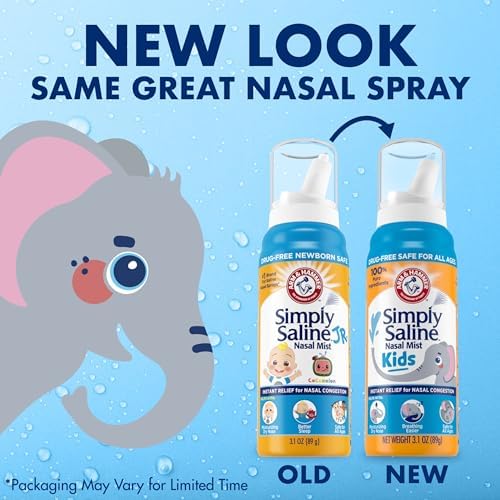 - 3.1 oz (89 g) bottle of ARM & HAMMER Simply Saline Kids Nasal Mist instantly relieves nasal congestion and moisturizes dry or irritated noses