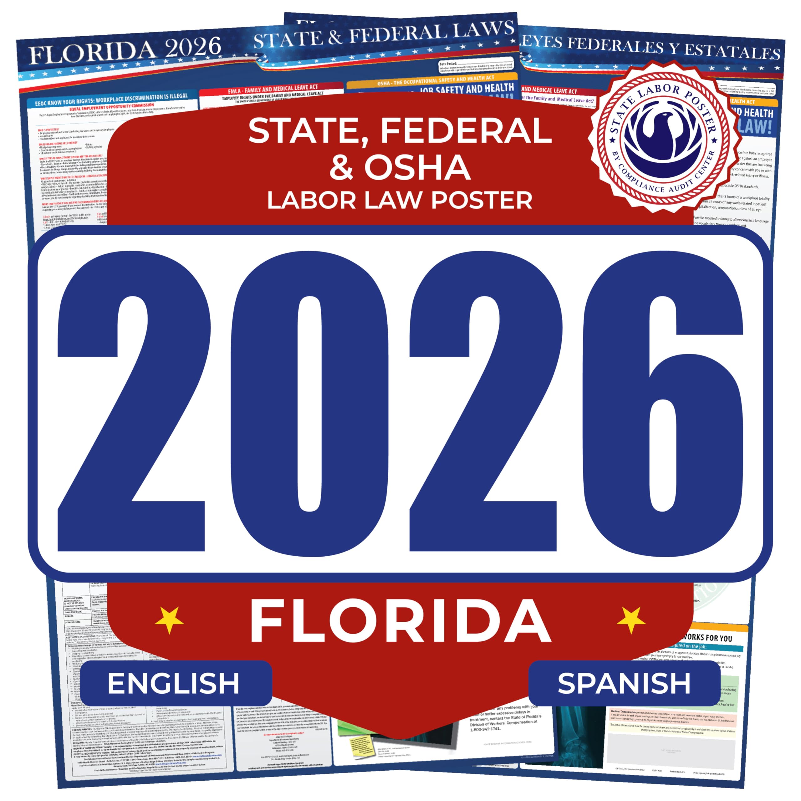 - 2026 Compliance Solution: Stay compliant with the updated Florida labor law poster 2026 English, featuring OSHA, FMLA, EEOC, and minimum wage notices. Laminated and waterproof for durability, ideal for busy workplaces that need clear, lasting compliance