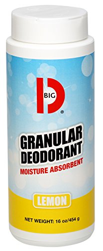 The granules of this cost effective deodorant are made of special odor-killing, moisture-absorbing clay. Sprinkle on spill or mess, then vacuum or sweep away. Destroys odors and absorbs moisture in one operation. 16 oz can. 12 cans per case. Lemon fragrance.