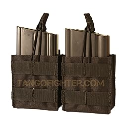 - Open top design with elastic band to secure magazines M14 mag compatible Front webbing for additional attachments MOLLE compatible Overall dimension: 4"H x 7"W x 2"D Mag Capacity Fits 2x M14 mags