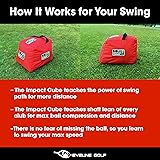 - The Impact Cube is made of an ultra-durable Ballistic Nylon. (If that is all we changed, it would be a huge improvement!) Next, we added a variety of angles to provide a fantastic visual and feel of the different leans and positions you practice. Fill it with towels and it is a solid 10 pounds- ideal weight and softness. IT HAS 4 SIDES WITH 4 IMPACT POSITIONS: The Wedge Lean side is slanted so a forward leaning Wedge matches the angle. There is a 7 iron lean and a vertical Driver lean side, too. There is also a round side. Then the magic happens! Flip the Impact Cube on its top and you have a side (the Wedge Lean) that is slanted toward you. Set the ball “under” the slant and it is the ideal tool for teaching an inside attack angle and preventing the “over the top” move. The Impact Cube was developed with Ed Bowe, Director of Instruction at Amelia Island. “I use it in every lesson. It helps people see the impact angles and learn the correct impact feel … fast.” It's TOUR TESTED, TEACHER APPROVED & PLAYER PROVEN
