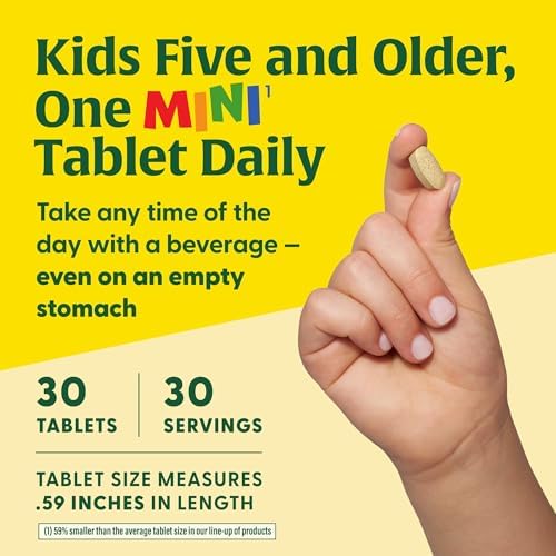 • TAKE ANY TIME OF DAY: Kids five and older take one mini (1) tablet daily with a beverage; May be taken any time of day, even on an empty stomach; These multivitamins are made without sweeteners, flavorings, and food colorings