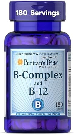 Puritan's Pride Suplemento Dietético Vegetariano Premium de Complejo Vitamina B y Vitamina B-12 para la Producción de Energía Celular, Mantiene la Salud de la Piel y el Apoyo Nervioso, 180 Tabletas